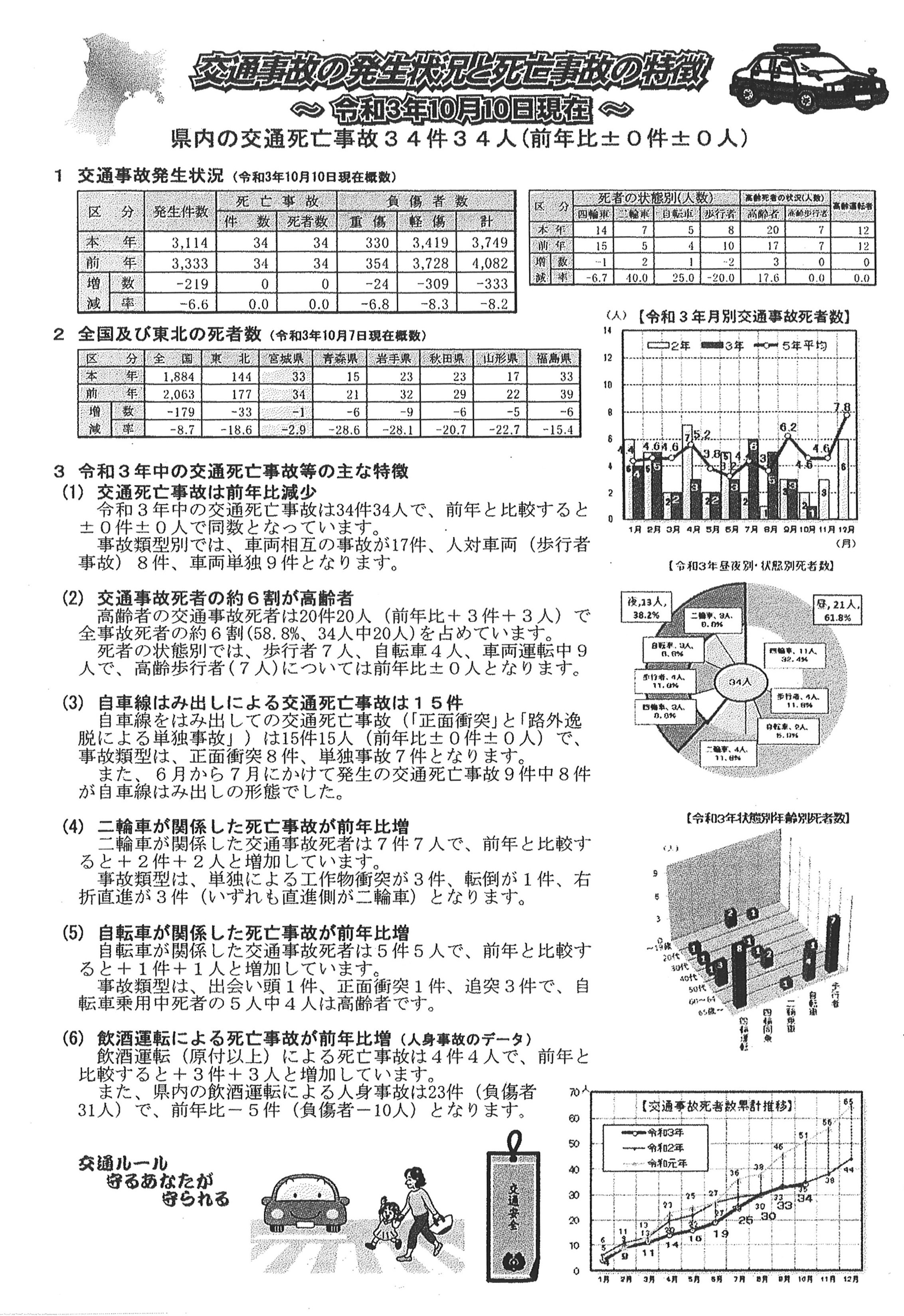 交通事故の発生状況と死亡事故の特徴(令和3年10月10日現在)