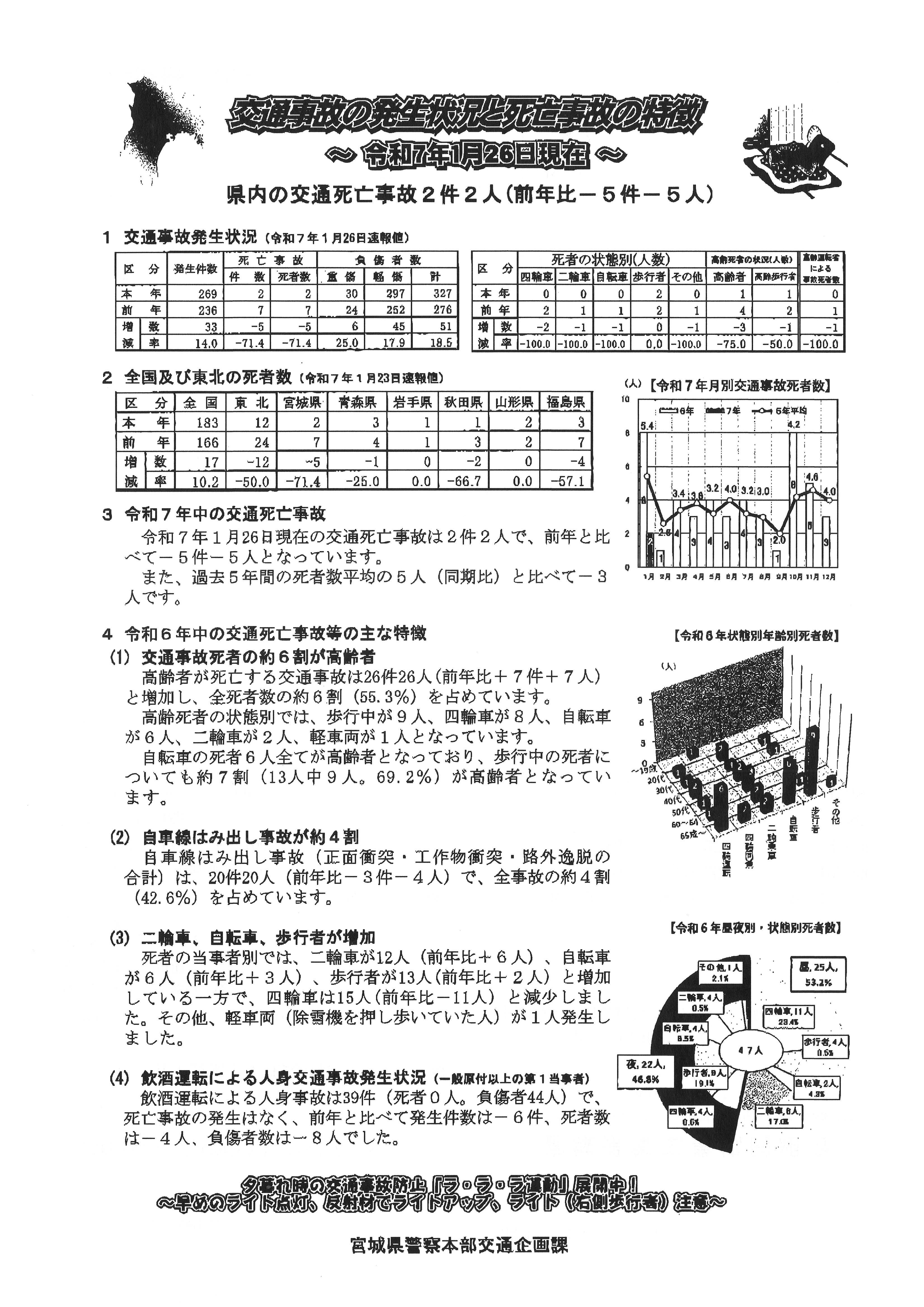 交通事故の発生状況と死亡事故の特徴(令和7年1月26日現在)