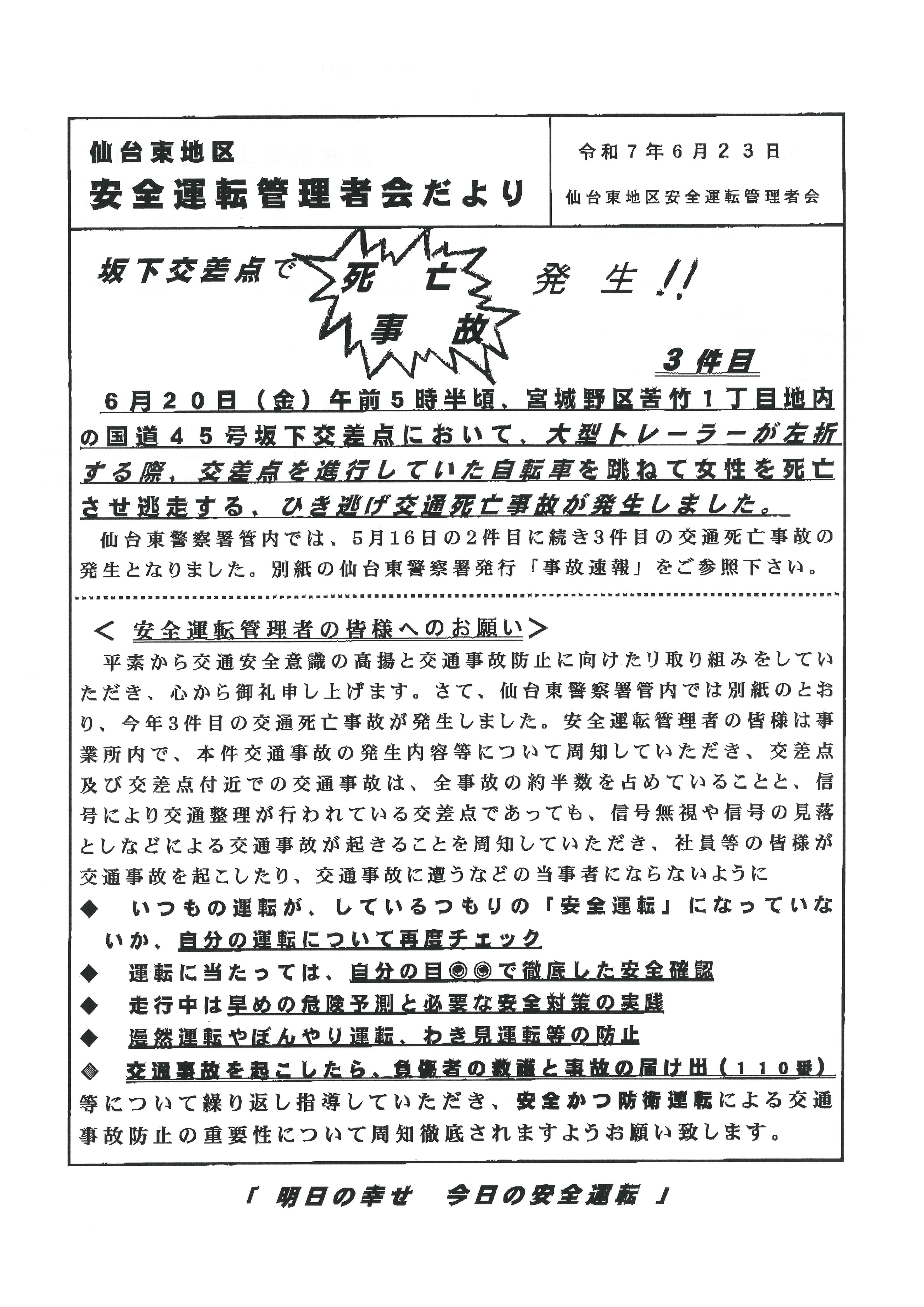 仙台東地区安全運転管理者会だより 令和7年6月23日