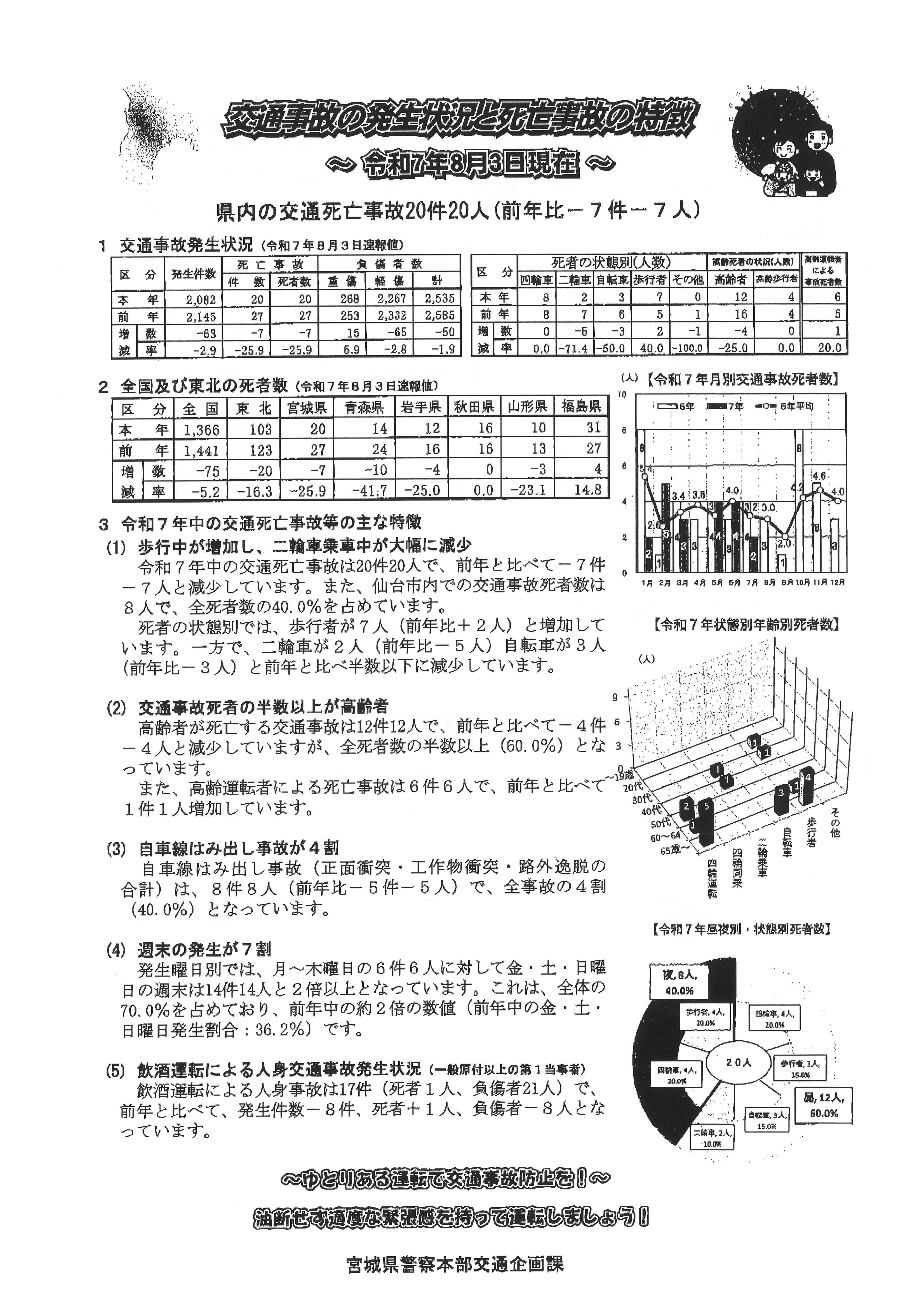 交通事故の発生状況と死亡事故の特徴(令和7年8月3日)