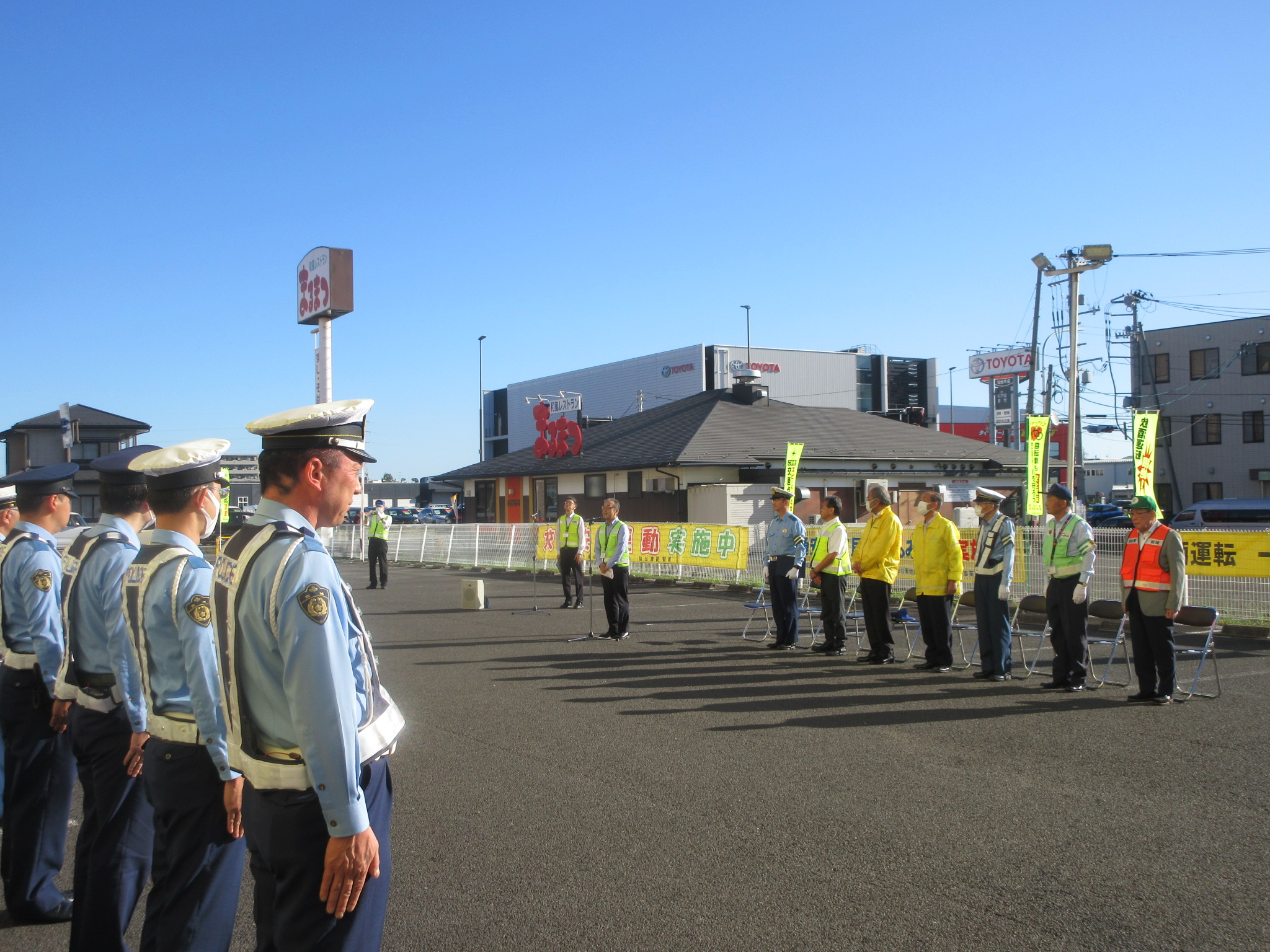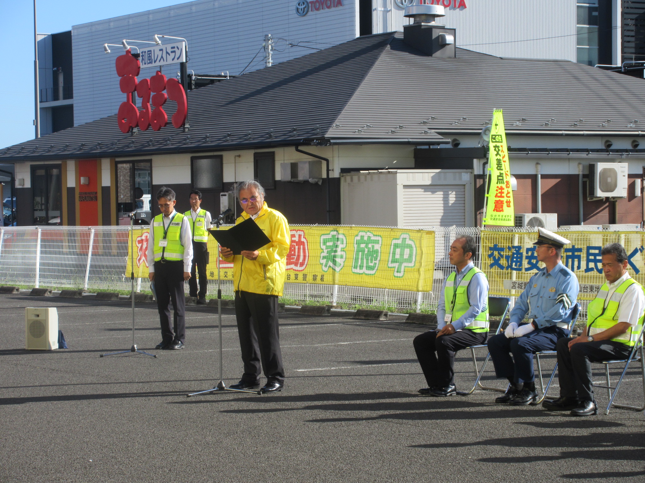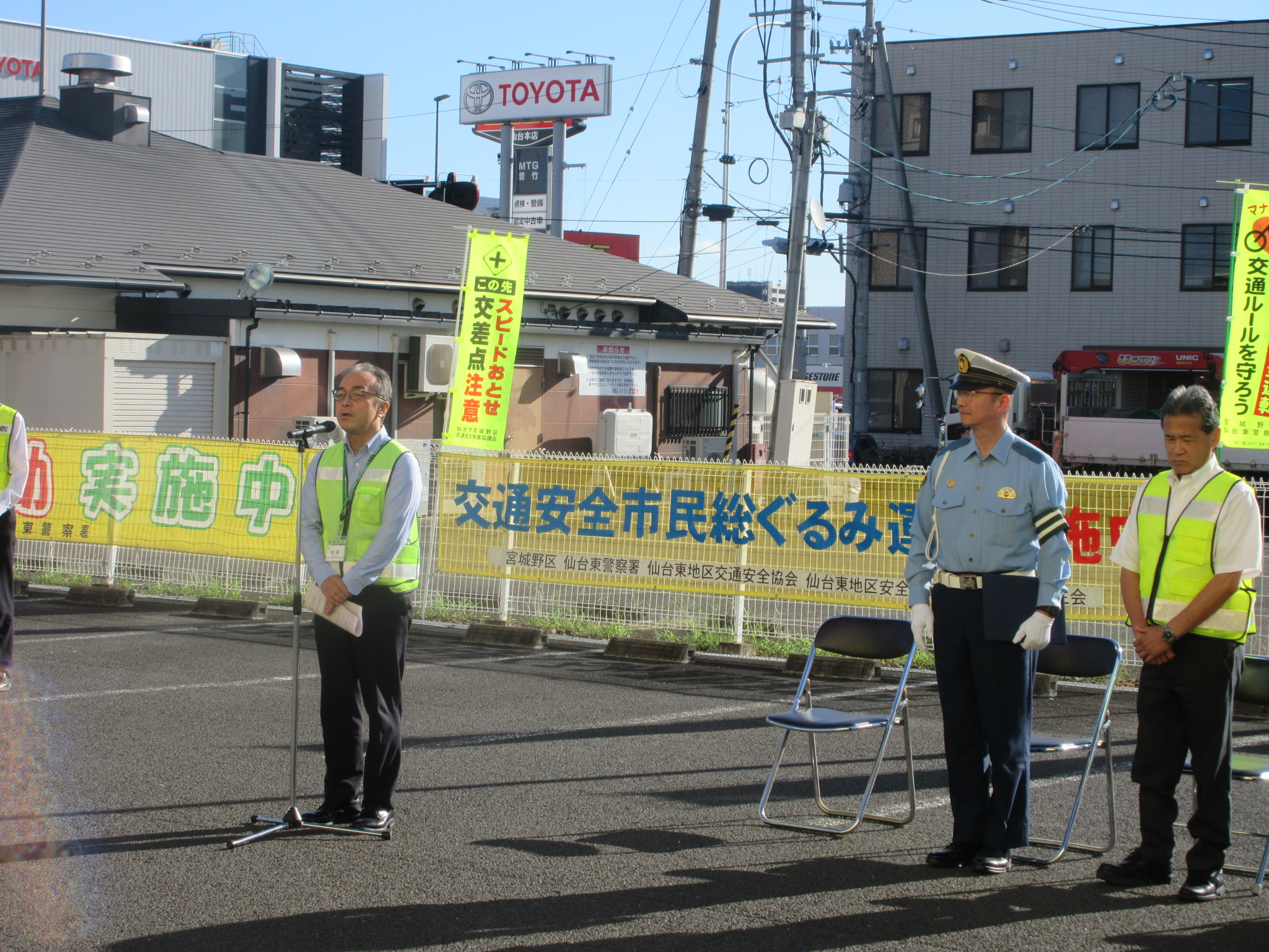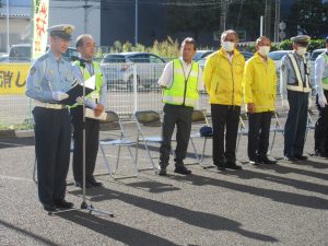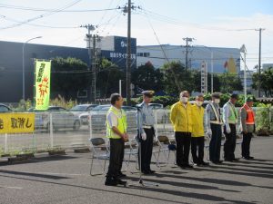 2025年10月6日 / 最終更新日 : 2025年10月6日 admin-sendaihigashi 活動報告 令和7年秋の交通安全市民総ぐるみ運動出発式の開催<運動期間令和7年9月21日~9月30日> 日 時:令和7年9月19日(金)7:30~場 所:YAMADA web.com 仙台センター店 東側駐車場<全景> <宮城野区長あいさつ><仙台東警察署長あいさつ><仙台東地区交通安全協会長あいさつ><交通安全の誓い><街頭パトロール出動> <閉会挨拶>