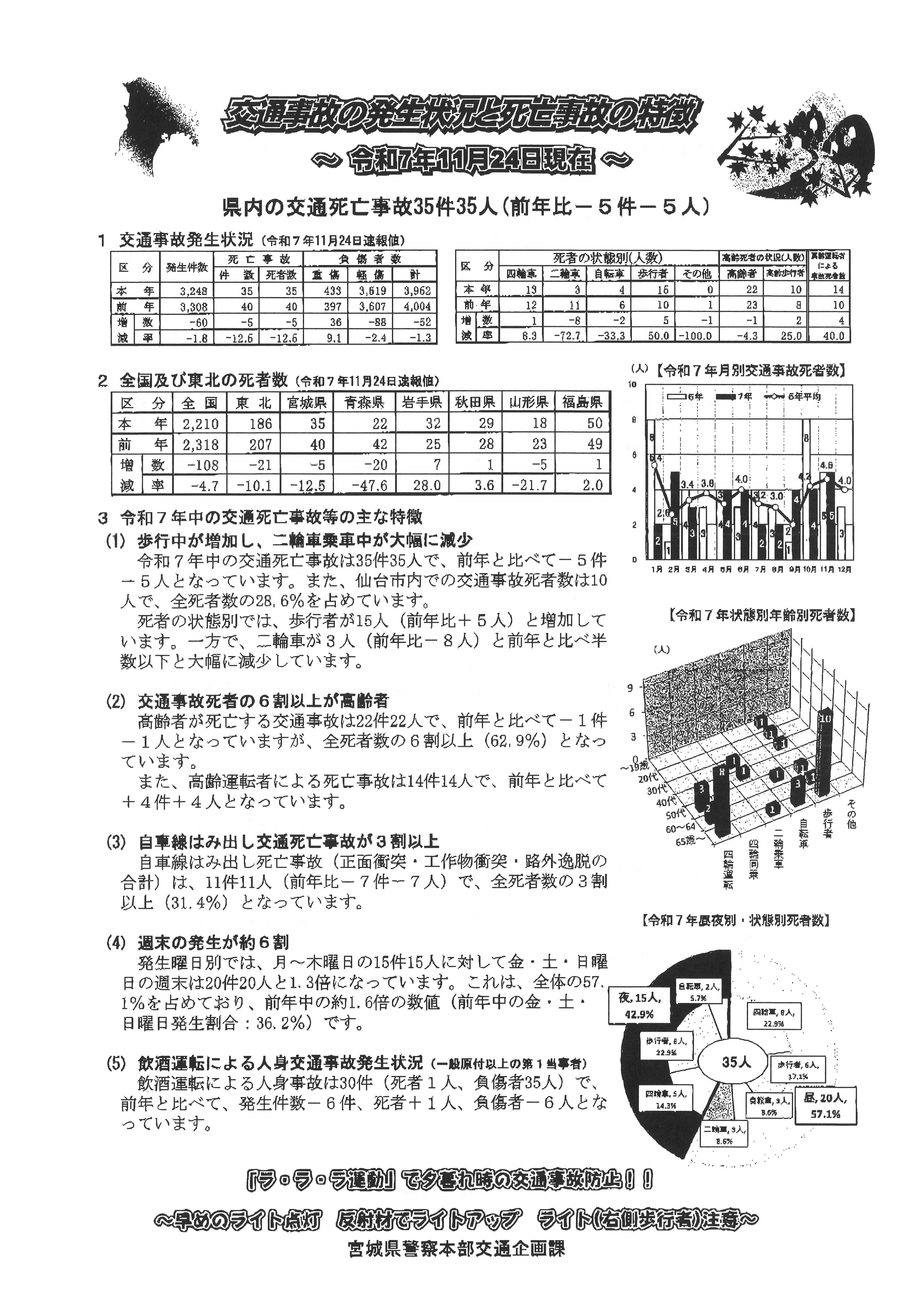 交通事故の発生状況と死亡事故の特徴(令和7年11月30日)