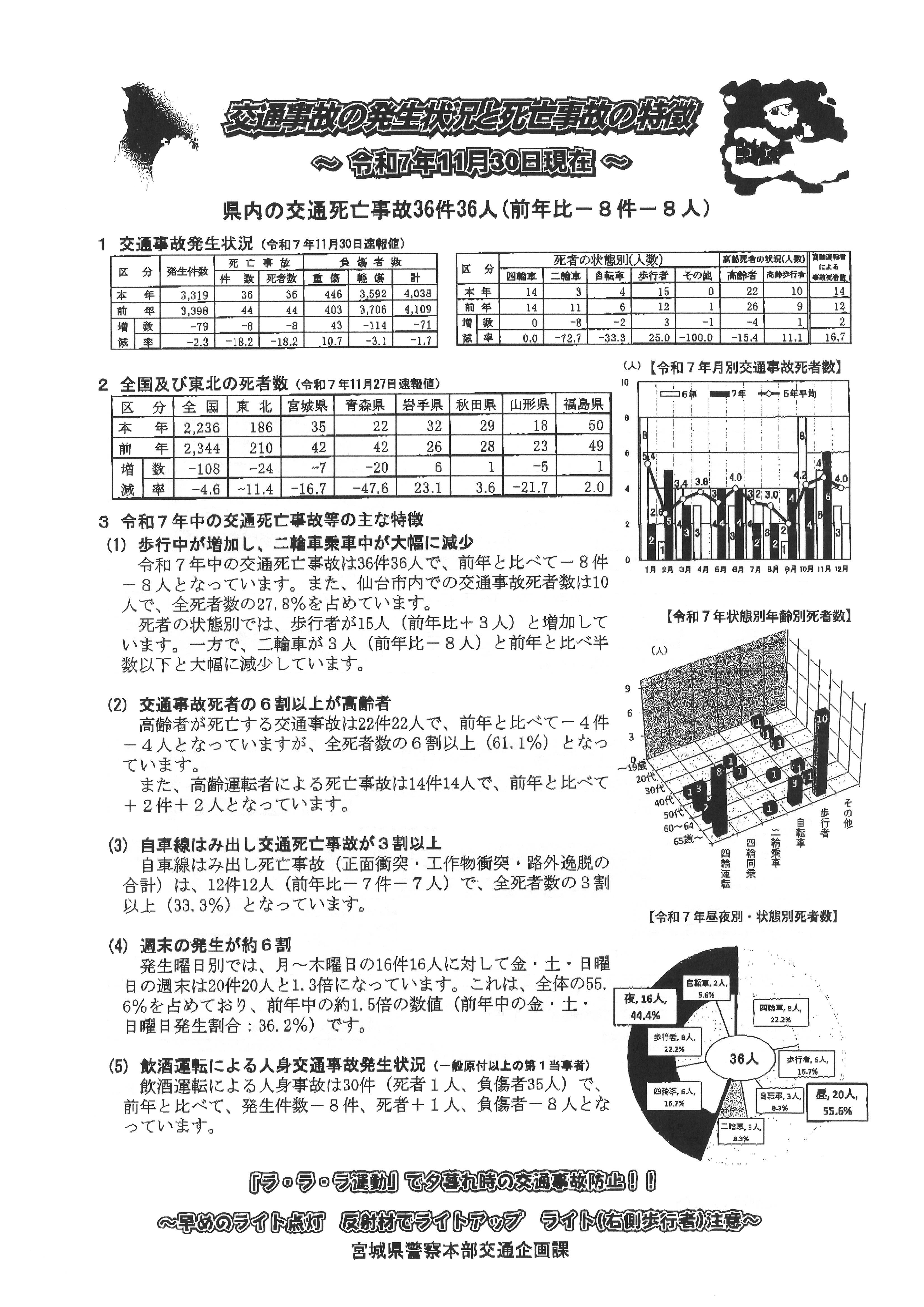 交通事故の発生状況と死亡事故の特徴(令和7年11月30日)