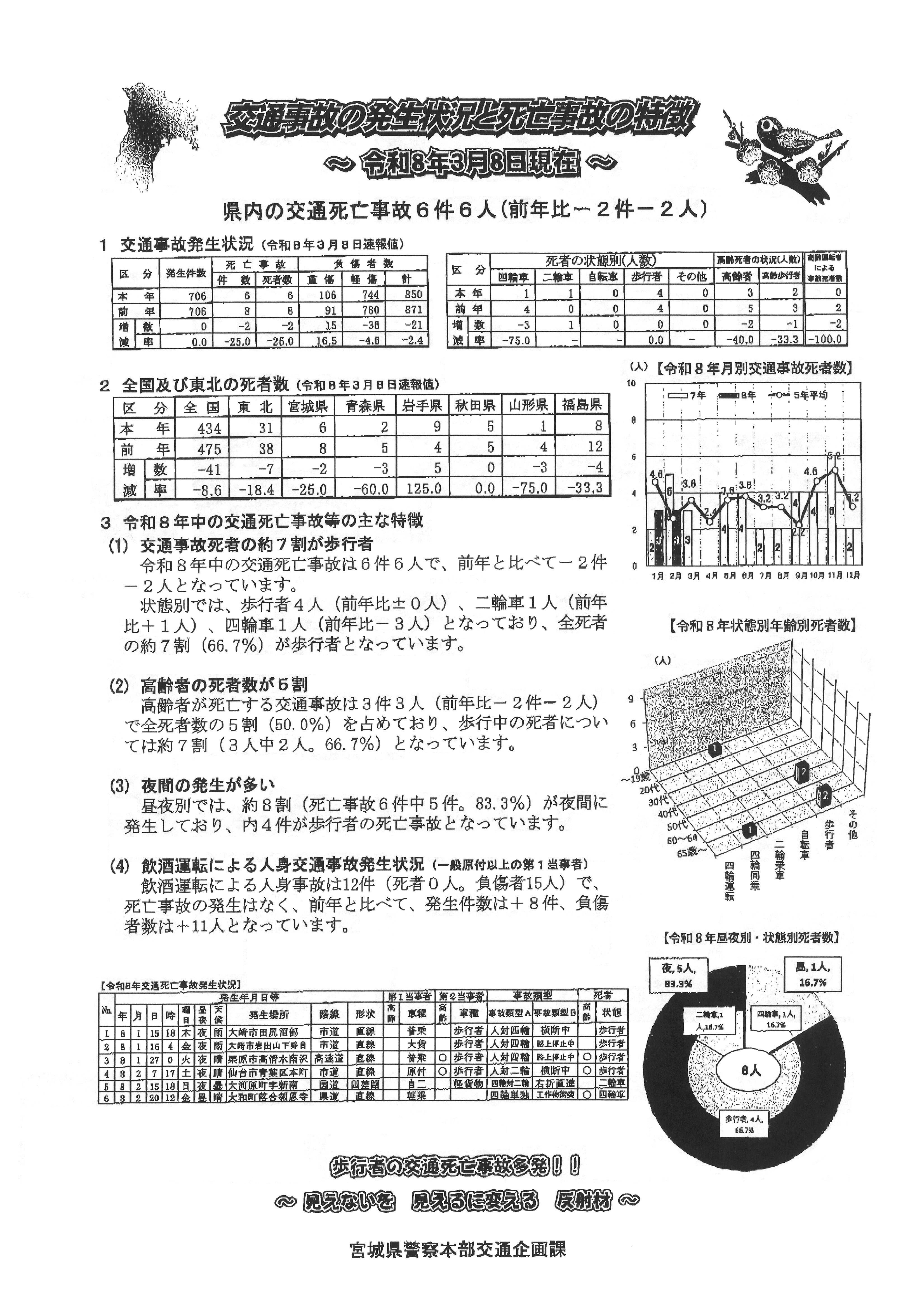 交通事故の発生状況と死亡事故の特徴(令和8年3月8日)